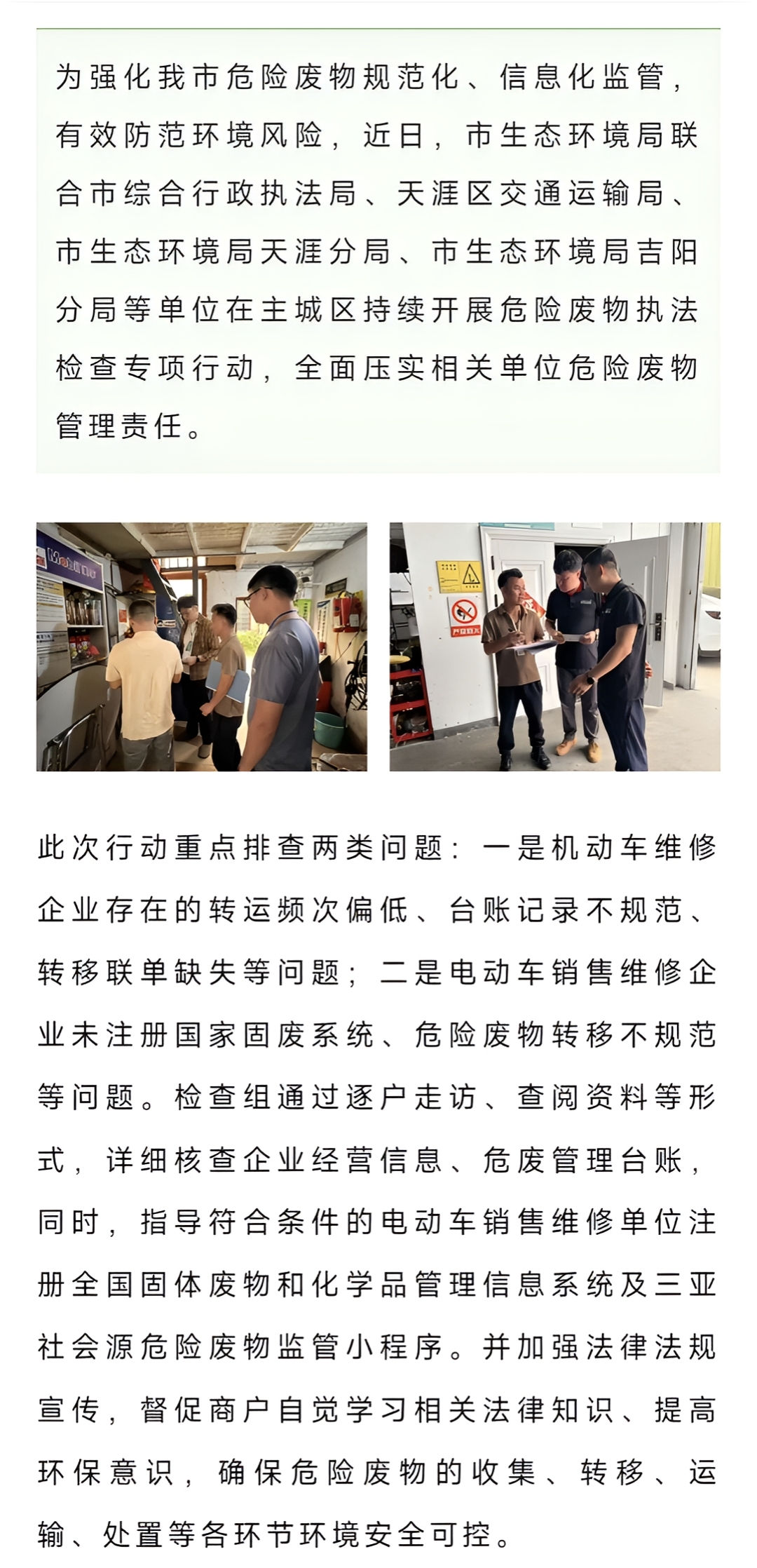 市生态环境局开展危险废物执法检查专项行动 全面推进危废规范化管理