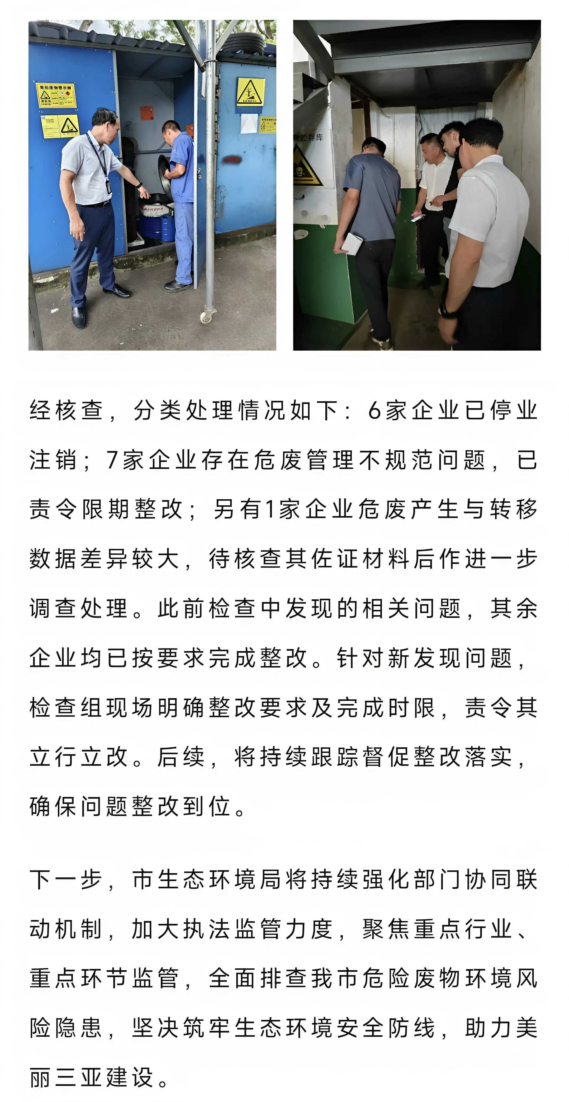 市生态环境局在吉阳区开展机动车维修行业危险废物执法检查专项行动