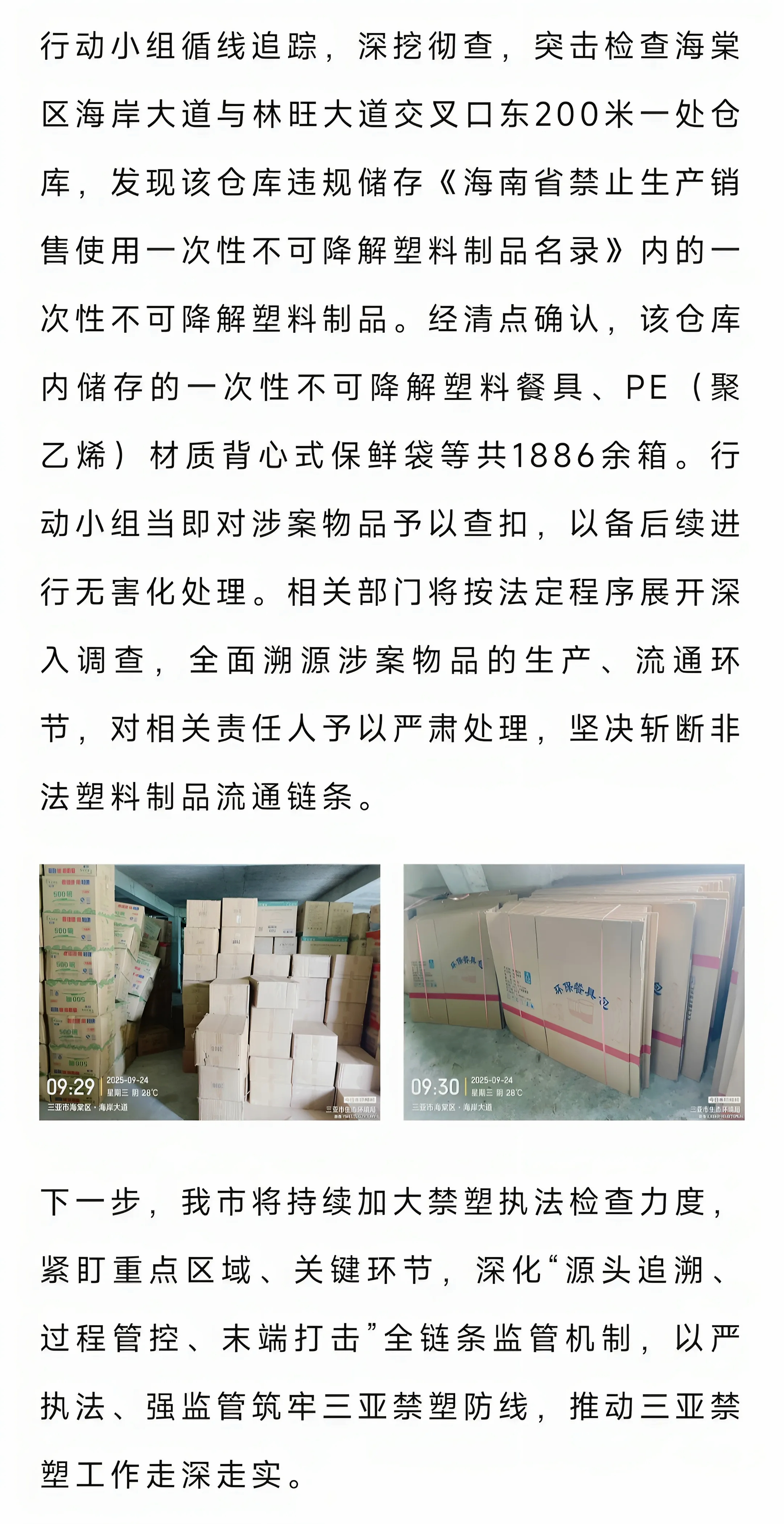 【持续追击】三亚查获违禁塑料制品1886箱!