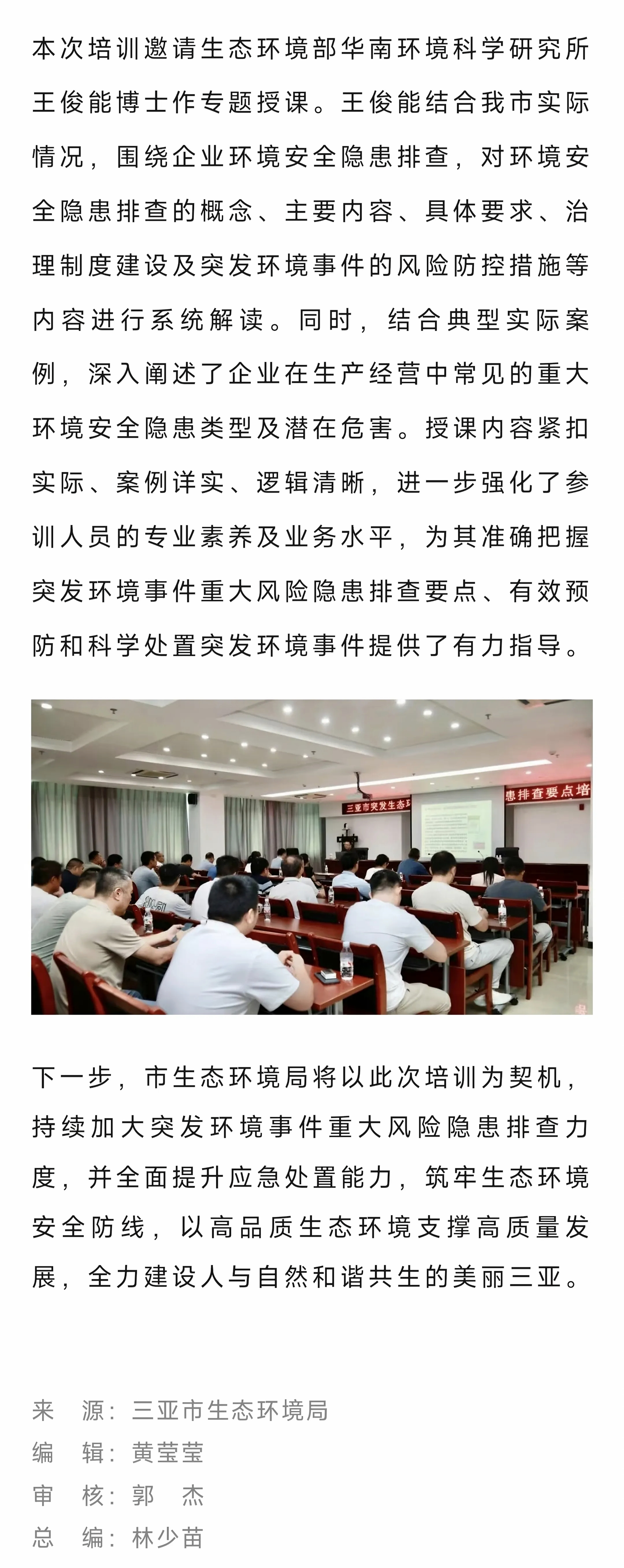 市生态环境局举办突发环境事件重大风险隐患排查培训会