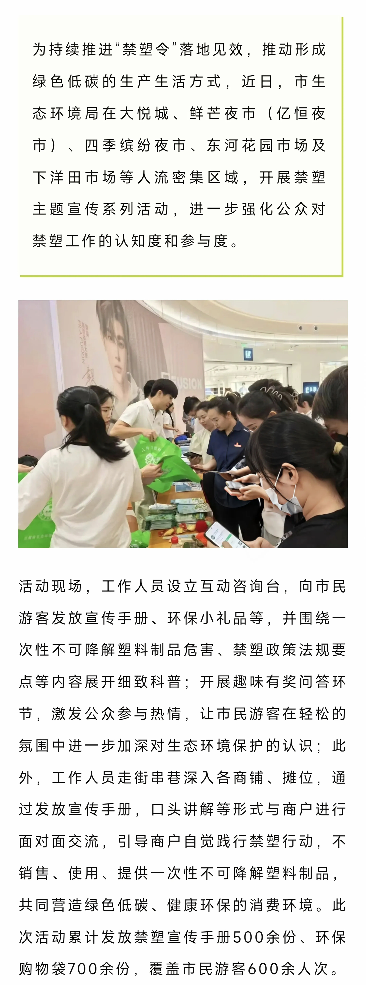 市生态环境局开展禁塑主题宣传系列活动 助推绿色生活新风尚