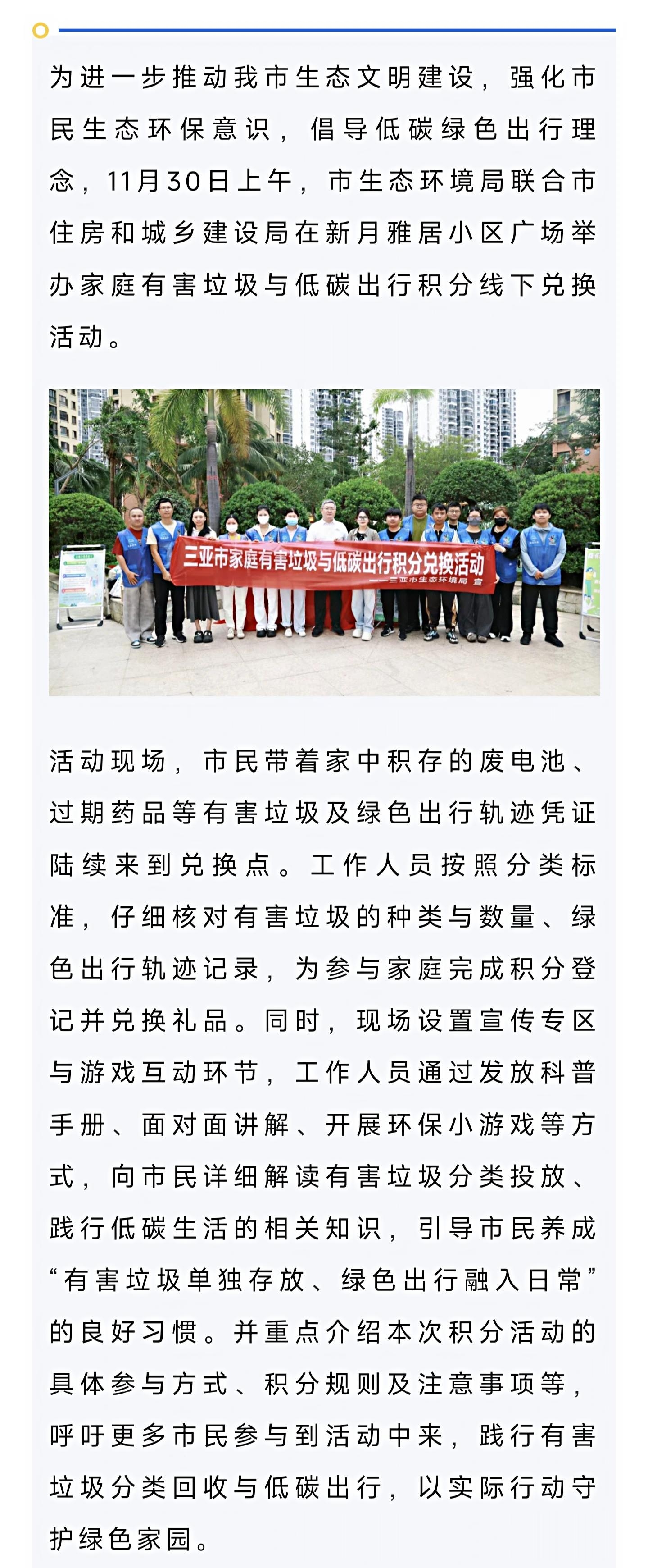 市生态环境局开展家庭有害垃圾和低碳出行积分线下兑换活动