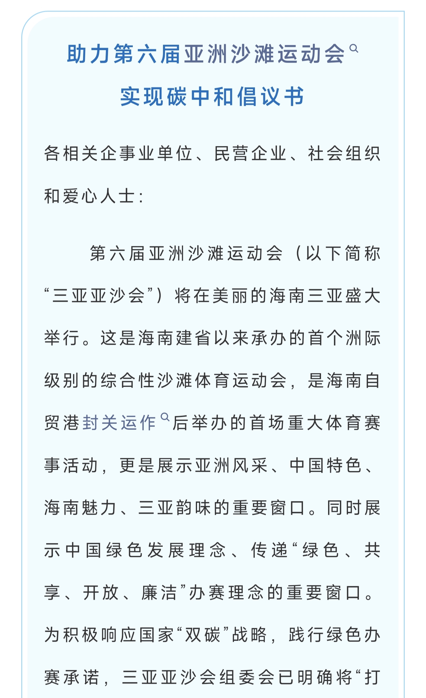 助力第六届亚洲沙滩运动会实现碳中和倡议书