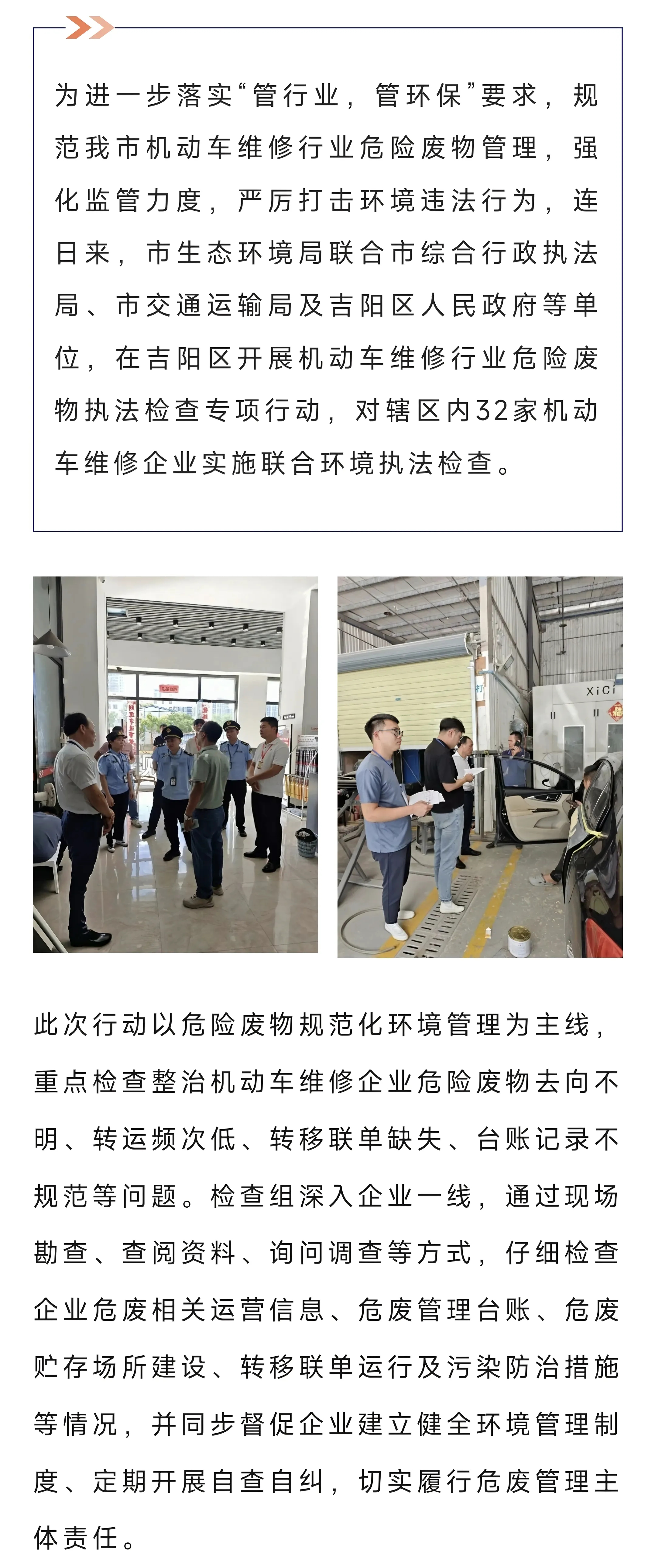 市生态环境局在吉阳区开展机动车维修行业危险废物执法检查专项行动
