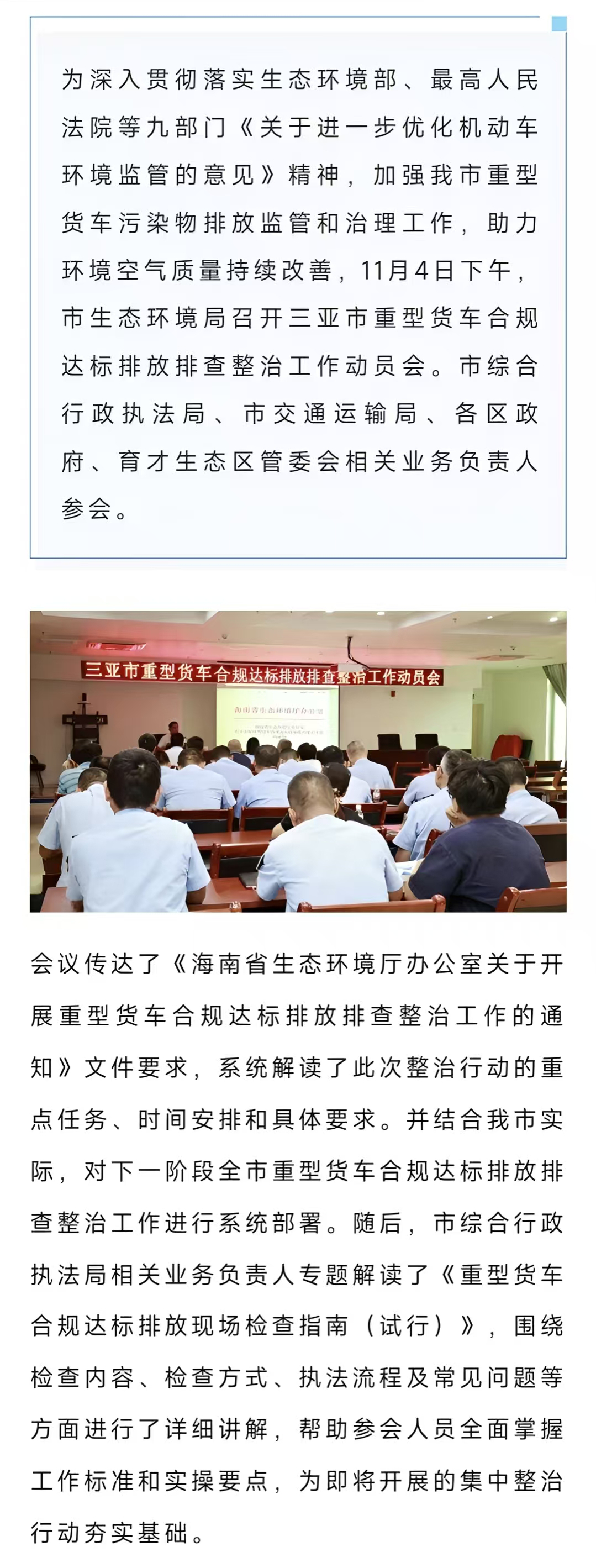 市生态环境局召开三亚市重型货车合规达标排放排查整治工作动员会