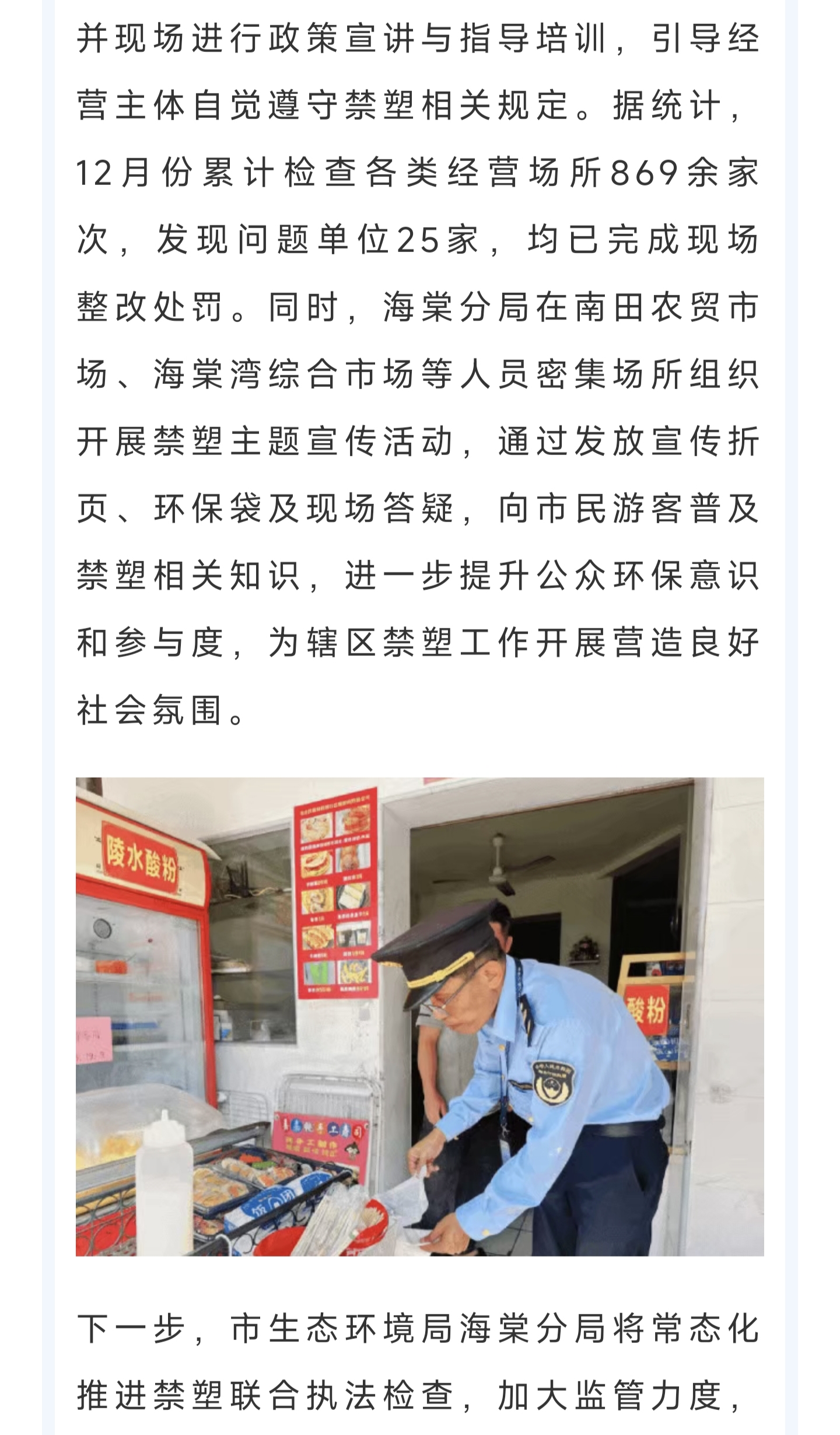 市生态环境局海棠分局扎实推进禁塑检查宣传行动 筑牢生态环保防线