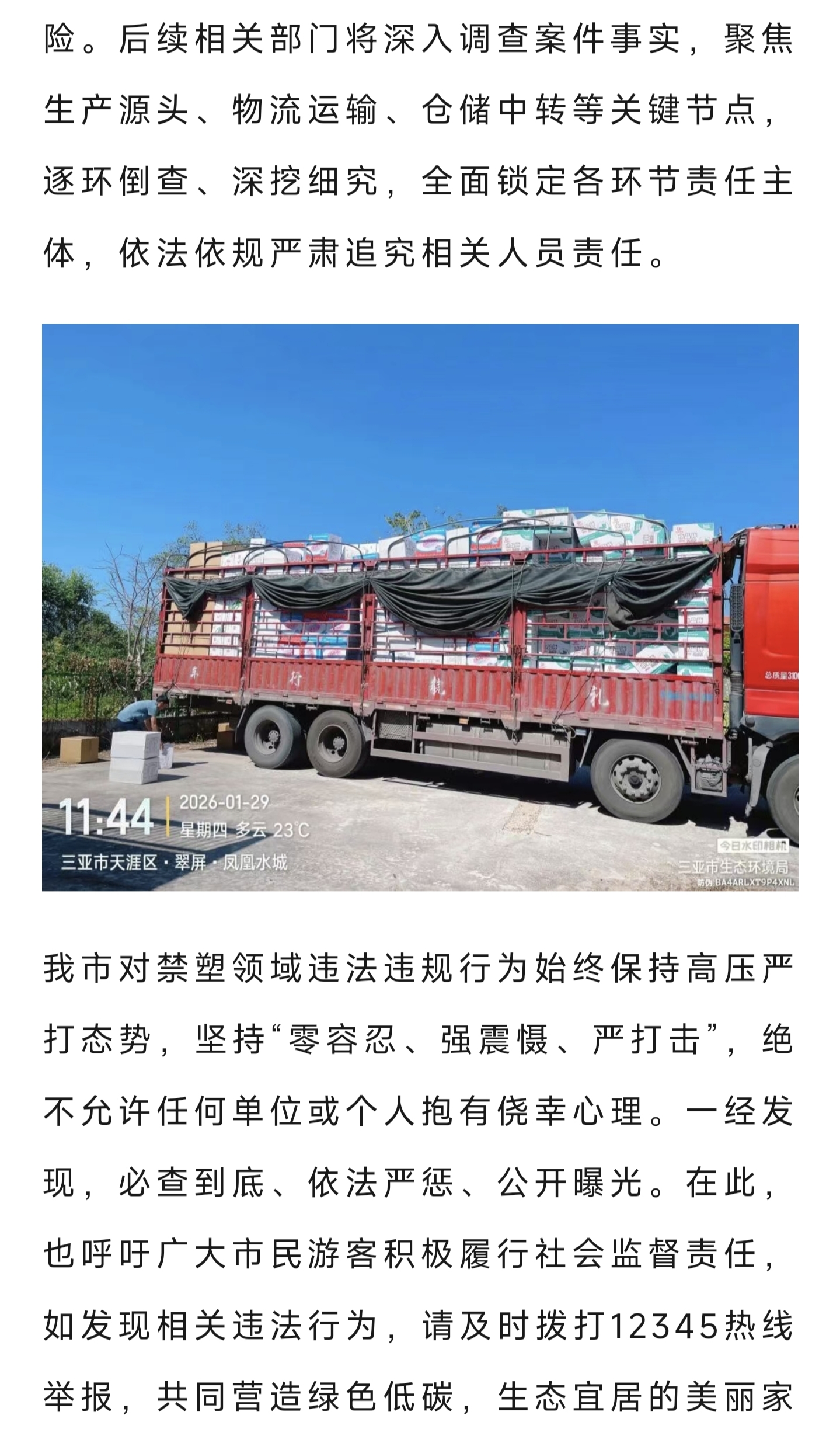 【雷霆出击】三亚查获违禁塑料制品1223箱!