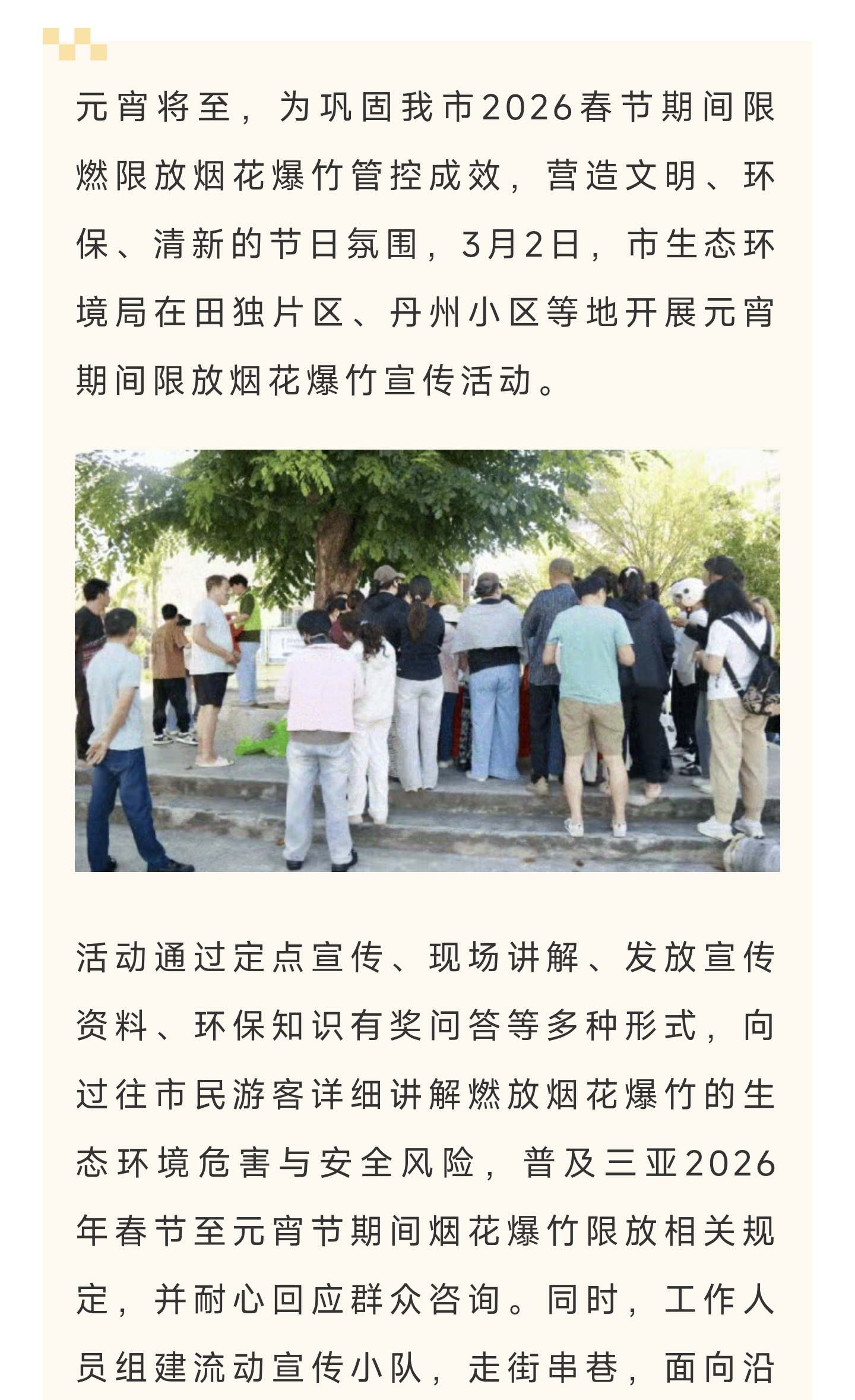 市生态环境局开展2026年元宵期间限放烟花爆竹宣传活动