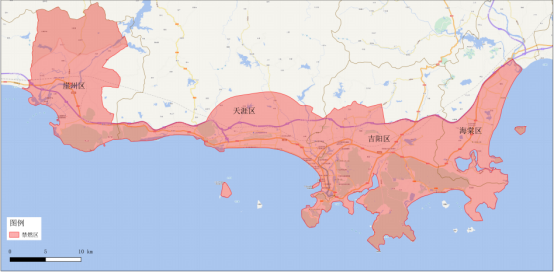 一、限制燃放范围:东至海棠区椰林路,西至崖州区城东村,北至G98高速(含吉阳区红花村、三汤村,天涯区水蛟村、羊栏村、槟榔村、南岛居委会,崖州区北岭村、赤草村、南滨社区、南雅社区),南至大海(含西岛旅游区、蜈支洲岛旅游区)(详见下图)。