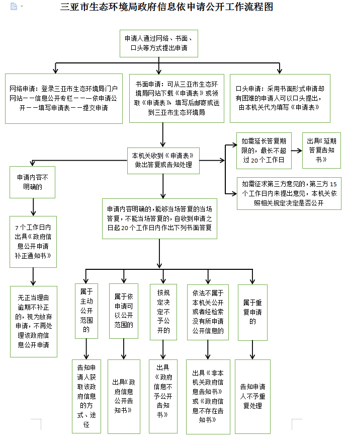 三亚市生态环境局应在收到《信息公开申请表》20个工作日内作出下列答复: