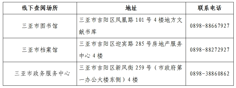 通过微信、三亚市图书馆、档案馆、政务服务中心查阅政府信息。
